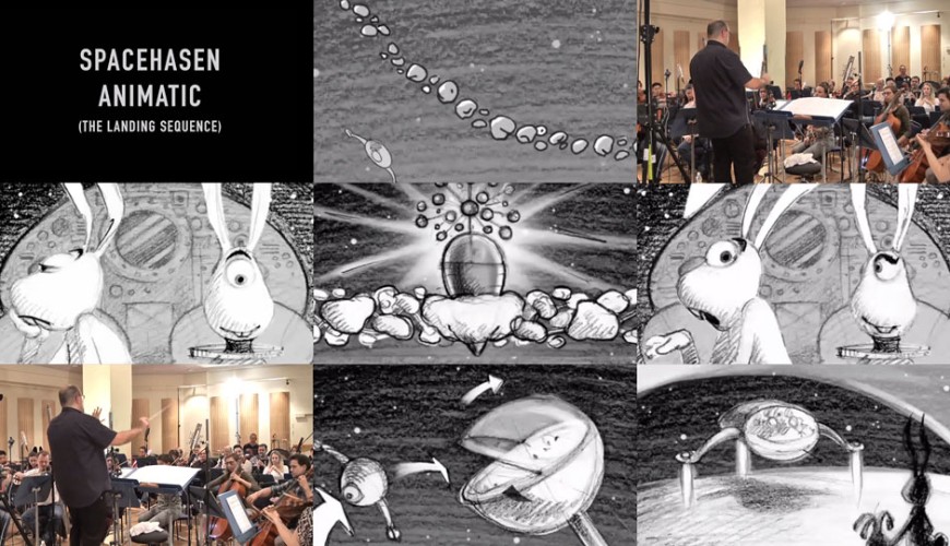 Die Suche nach einer passenden Musik begann in einer sehr frühen Phase des Spacehasen-Projektes mit hohen Ansprüchen an den Komponisten – sollte er sich doch an Kompositionen von Erich Wolfgang Korngold, Miklós Rózsa, Jerry Goldsmith und John Williams orientieren.